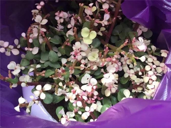 在花市里,几乎每家店都有金枝玉叶,名字好寓意好,样子也特别,顶部的叶子粉嫩嫩,其实都是药物催出来的,它本身就怕冷,再加上用了药,天冷更难养了。