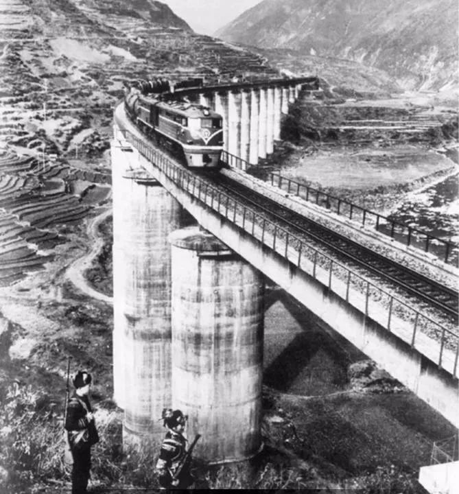 成昆铁路,桥下为守卫铁路大桥的民兵(图片来源:侠客地理)
