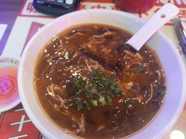 店里的鸡丝碗仔翅,味道非常正宗,里面的鱼肉鲜嫩爽滑,非常可口,如果你喜欢吃酸,一定要记得加点红醋,酸酸的口感,更加鲜美。