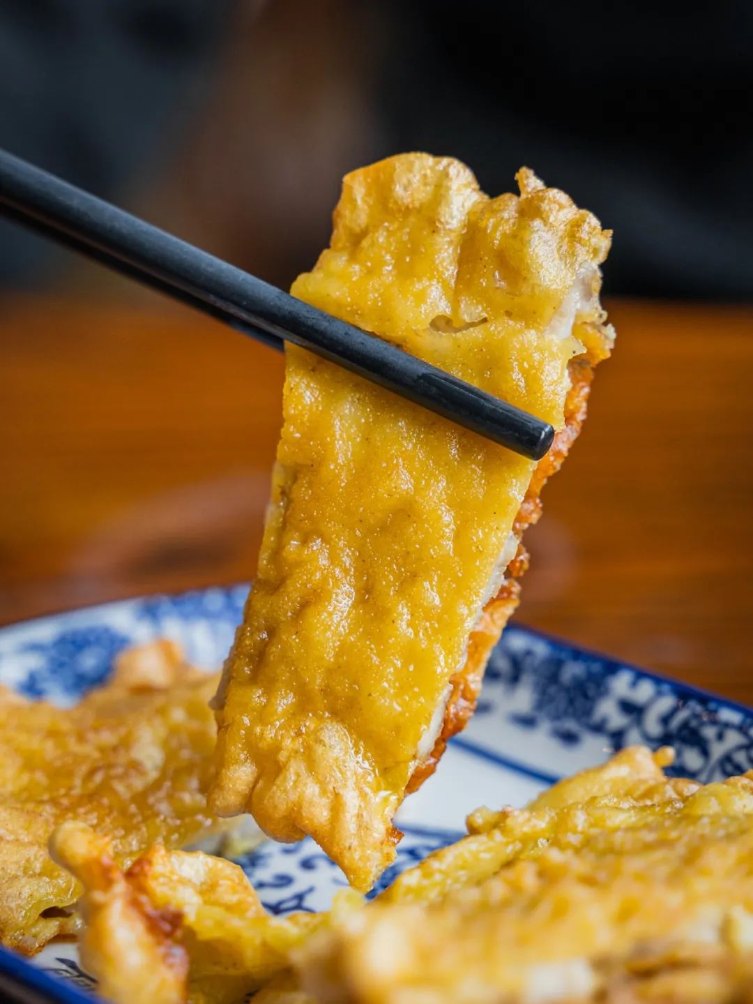 一口下去,大排内部软嫩,同时还保留了一定的汁水。蛋汁大排几乎没有提前炸好的,都是现炸,吃热乎的才够香。