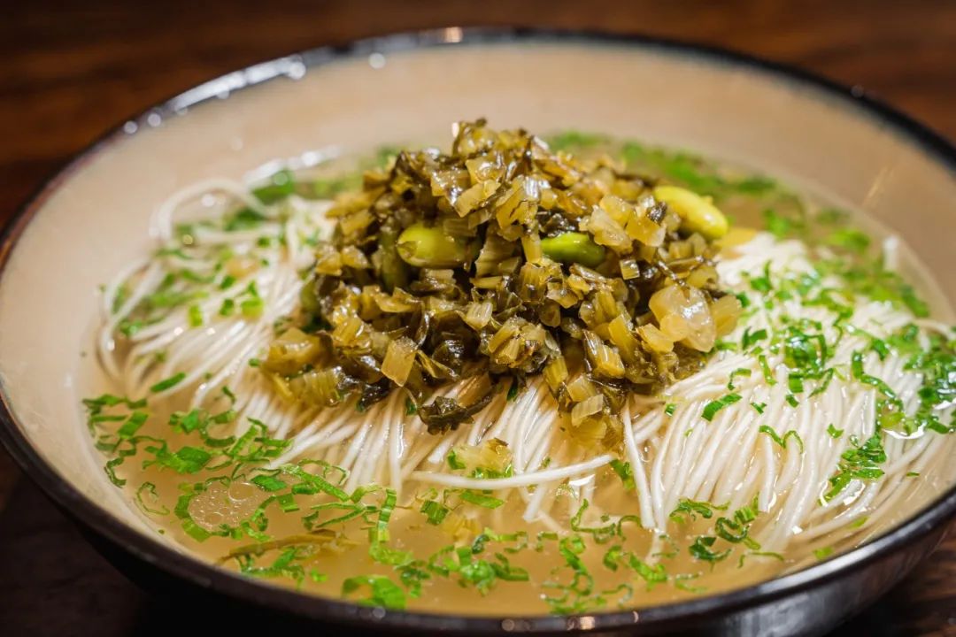 苏式面夏天撒葱,冬天撒蒜叶,由于大部分浇头没多少绿色,重青成了很多食客的选择,让面的“色面”看起来更立体。