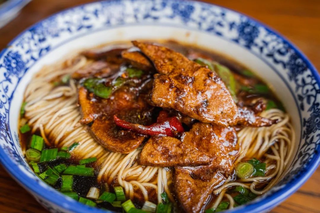酱爆猪肝我个人最喜欢配拌面,拌面可以说“免汤”,但这种说法未免太绕了,所以老食客们往往会直接说“拌猪肝”,店家就懂了。