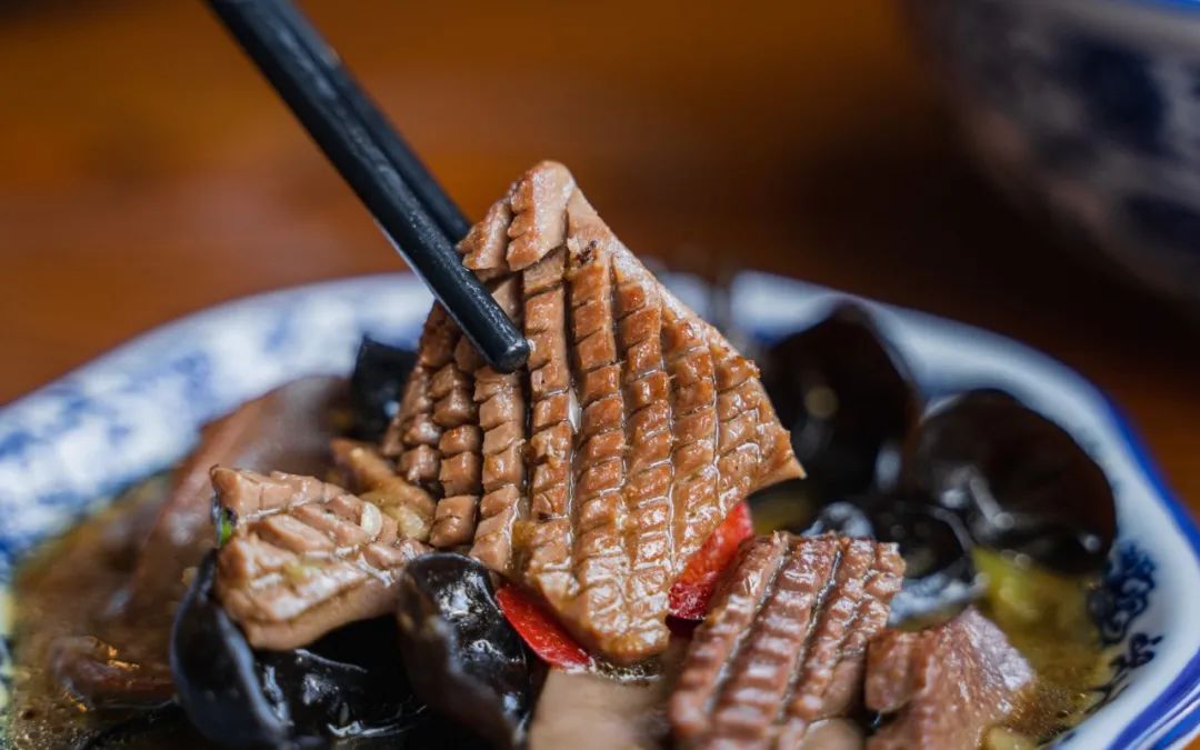 枫镇大肉面的由来,据说是一个面馆店家误将喝剩的残酒倒入锅中。发现这样做出的白焖肉居然喷香扑鼻,自此开始主营白汤面。