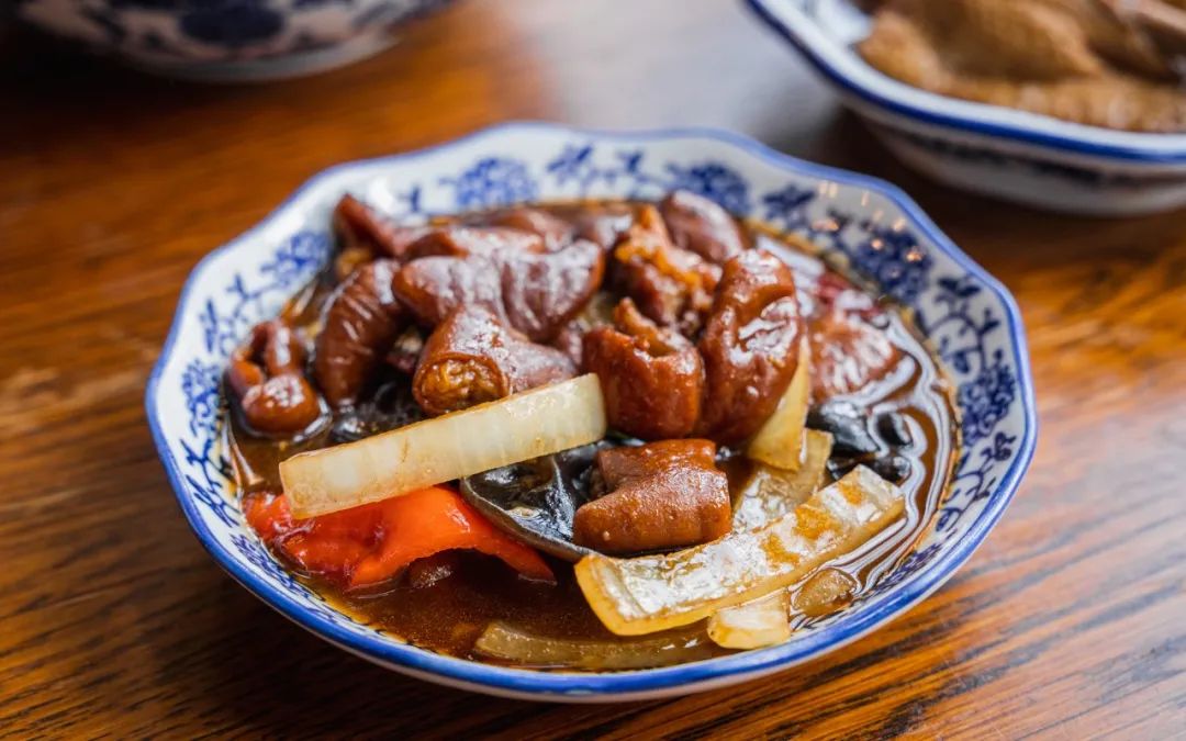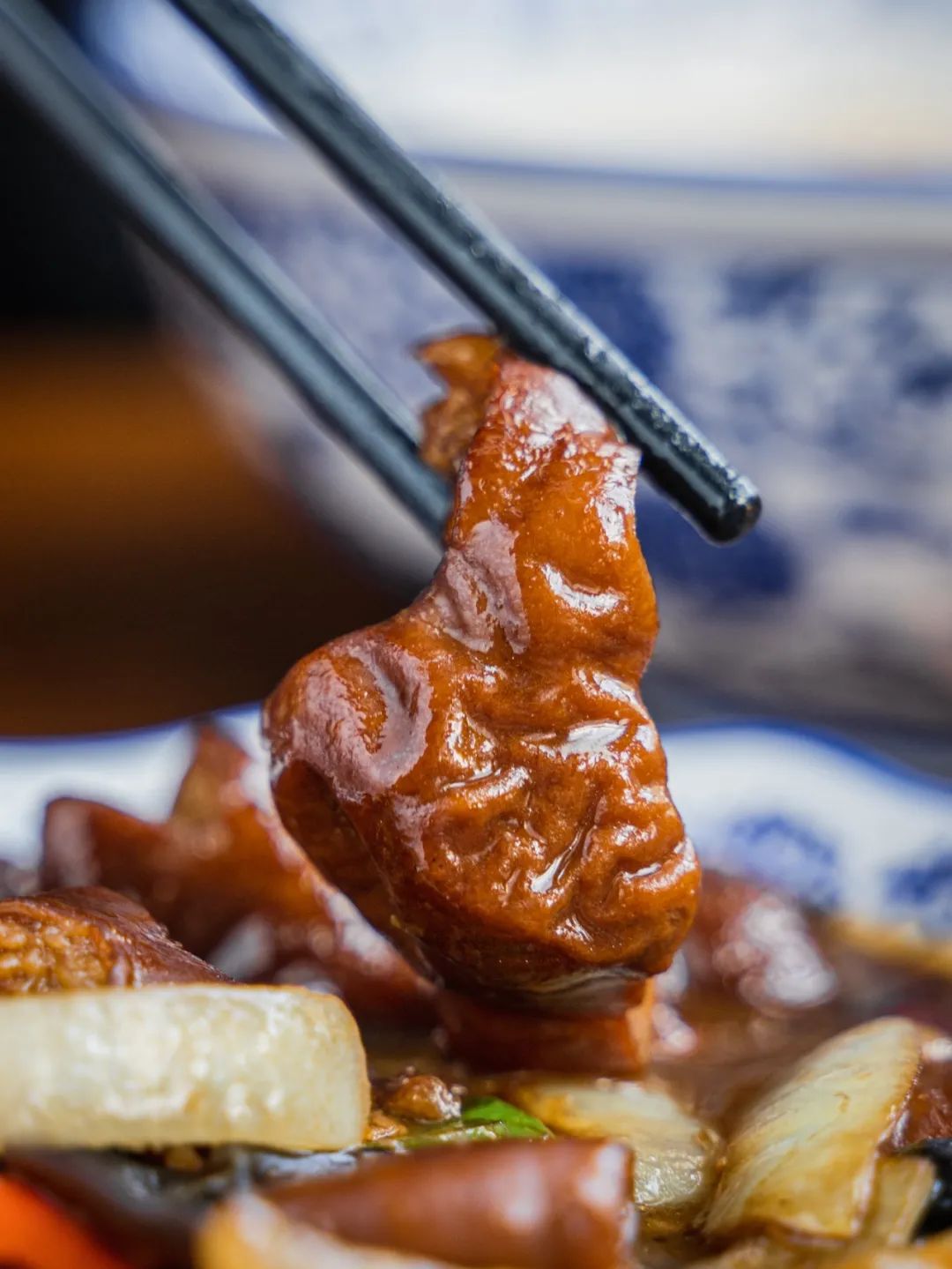 同时,切了花刀的腰花下锅一炒,不仅有了好看的外形,还充分粘上了酱汁。出锅后的腰花,入口还有着微脆的口感。