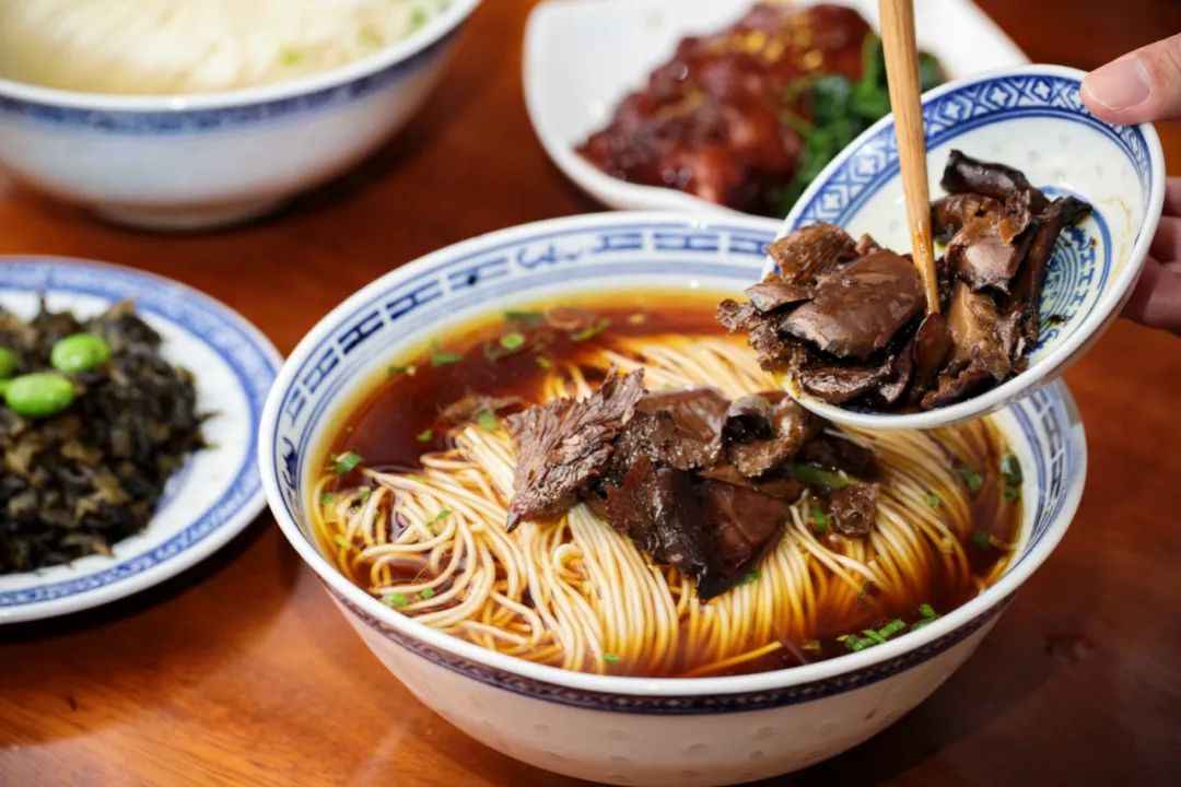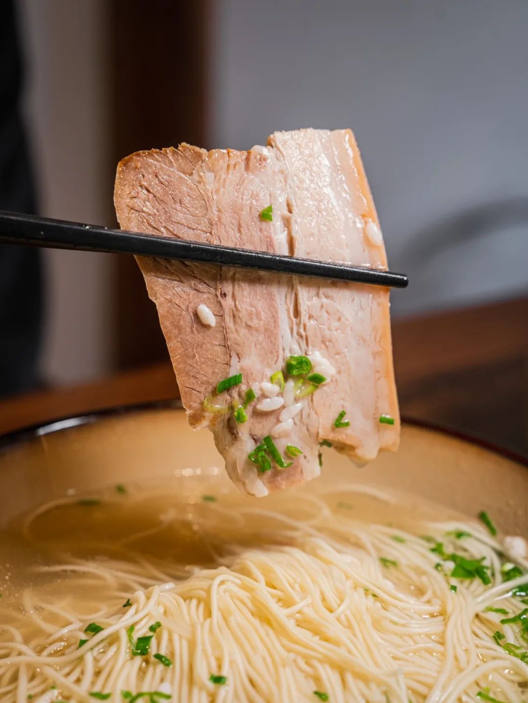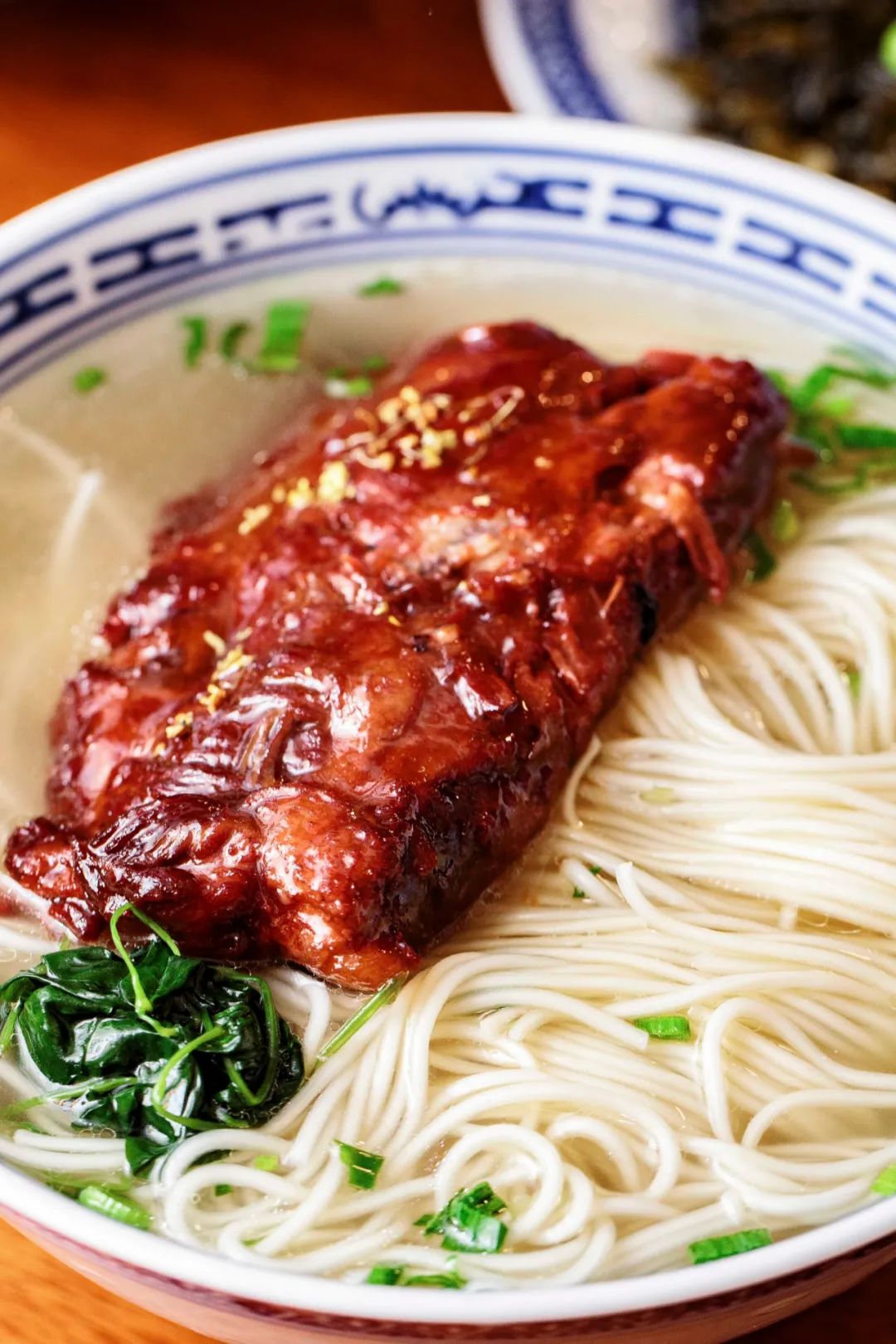 因此枫镇大肉面一定是白汤面,同时汤里会有酒酿,带着几乎尝不到的酒味。配上一大块焖肉,汤鲜肉酥,味道绝佳。