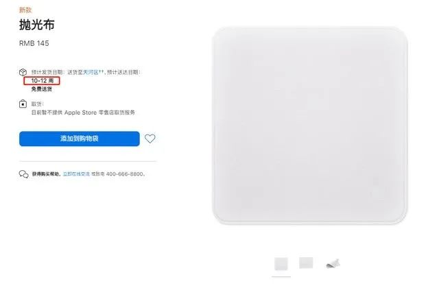 抛光布的价格虽然离谱,但却很受欢迎,目前苹果官网显示的交货时间已经延长到10-12周,直接排到2022年初,可以说是供不应求。也就是说,即使是一块“抹布”,如果现在花145元订购,也有可能要到明年才能收到货了。