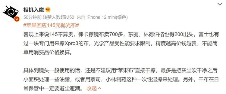 有专业网友指出,徕卡擦镜布卖700多元,光学产品受性能要求限制,精度越高价钱越贵,不能简单用消费品价格换算。