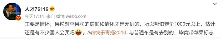 也有网友提到了果粉对苹果的情怀,认为哪怕定价1000元以上,还会有人买。