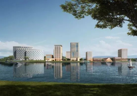 ▲ 华为广州研发中心滨水透视图和鸟瞰图
