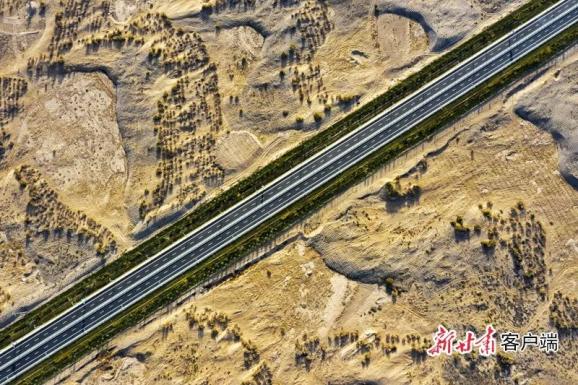 北仙高速公路民勤至武威段航拍。(图片由省交通运输厅提供)