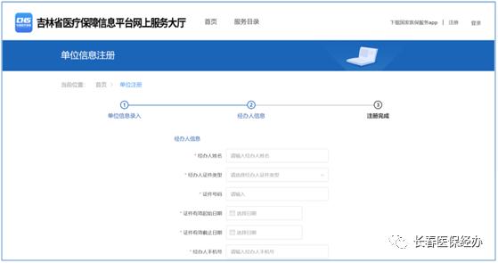 3.点击【下一步】,进入经办人信息录入,带*号为必填项,填写完毕点击【下一步】即可注册成功;