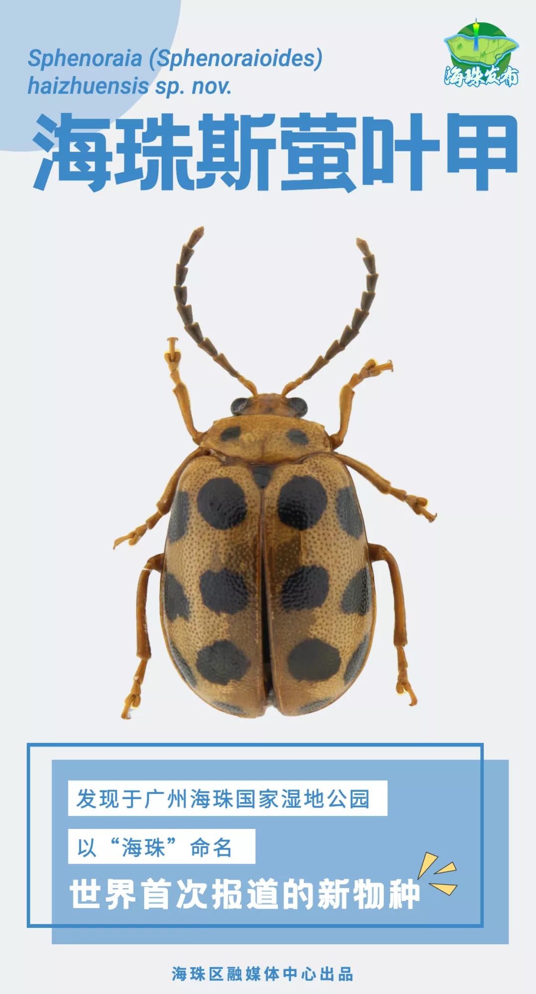 ▶全球首次发现!以“海珠”命名! 昨日,在广东省暨广州市第三十一届保护野生动物宣传月活动上,广东省科学院动物研究所杨星科研究员团队正式对外发布近日在海珠湿地发现的一个稀有昆虫新物种,科研团队将其命名为“海珠斯萤叶甲”。