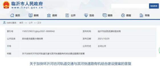 您提出的《关于加快环沂河祊河轨道交通与滨河快速路有机结合建设的建议》的提案已收悉。根据您提出的建议,我们与相关部门进行了认真研究,并制定相关措施。现将相关工作情况答复如下: