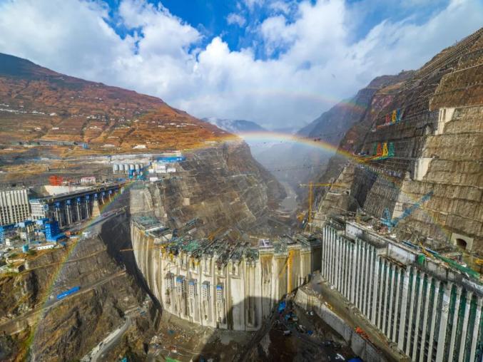 ▲中央企业以创新推动绿色发展,为实现碳达峰、碳中和发挥央企表率作用。图为三峡集团投资建设运营,中国电建、中国能建、中国安能等中央企业参与建设的白鹤滩水电站现场。