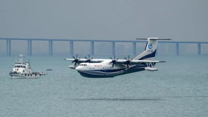 2020年7月26日上午,山东青岛团岛附近海域,“鲲龙”AG600成功实现海上首飞。这是AG600飞机继2017年12月24日陆上首飞、2018年10月20日水上首飞之后实现的第三次首飞。