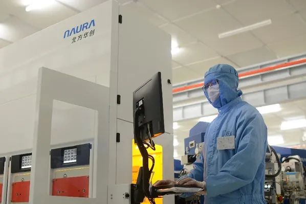 ▲北方华创以“2年锁定期+3年行权期”的机制,完成首批核心人员至少5年的稳定和激励。图为工程师在调试刻蚀机。