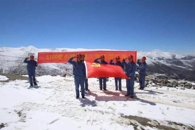 ▲保利集团西藏中金新联5100党小组在海拔5100米的甲玛露天施工工地重温入党誓词。
