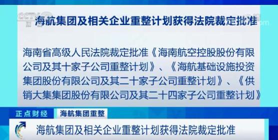 今年1月29日,海航集团发布声明称,相关债权人因其不能清偿到期债务,申请法院对其破产重整。历时9个月,海航集团及相关企业重整计划获法院批准。