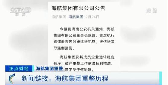 9月24日,海航集团发布公告称,接到海南公安机关通知,海航集团有限公司董事长陈峰、首席执行官谭向东因涉嫌违法犯罪,被依法采取强制措施。