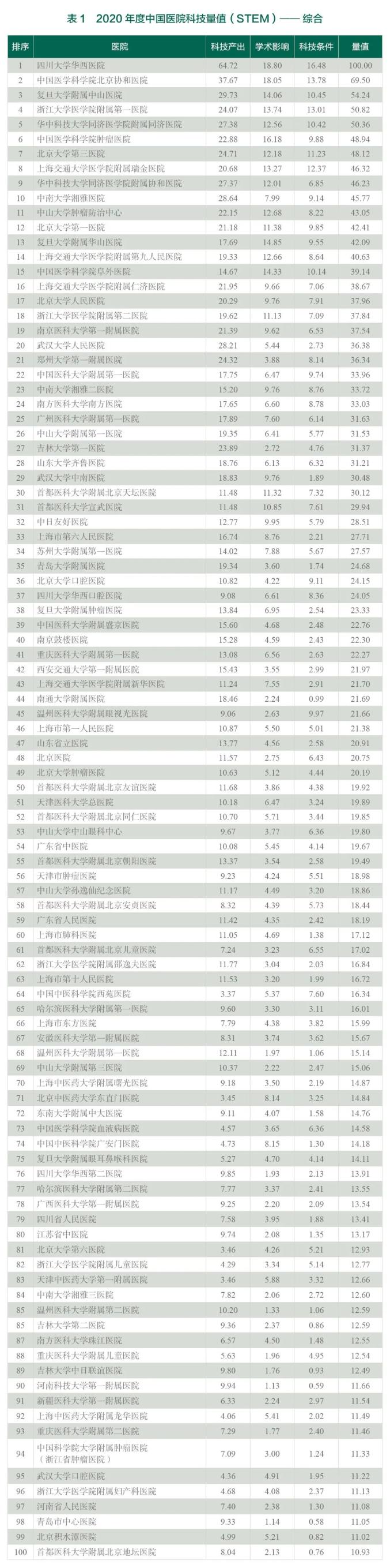 原标题:《揭晓!2020年度中国医院/中国医学院校科技量值(STEM)发布!(附榜单)》