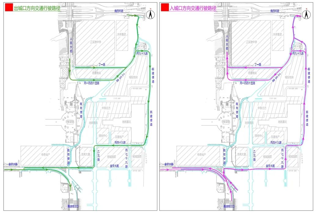 据悉,因人民大街下穿隧道工程、中铁集团开发项目、地铁6号线等工程建设,现状的交通便道和乙五路将封闭,人民大街以东没有现状路可供通行。为解决人民大街以东区域交通出行问题,有效缓解现状南出口交通拥堵,市建委通过实地选线调研,组织新建了一条能够串联丙九十九路、乙五路、丙一百四十三路的高标准交通导行便道。