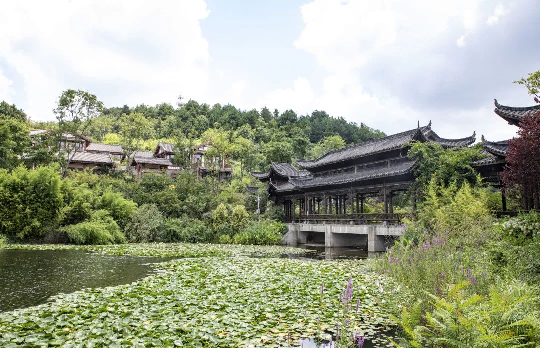 澜山酒店位于乡愁贵州景区内,以现代中式的建筑风格呈现,层叠屋顶、石墙堆砌、通透玻璃,周围植物将建筑隐于山水之间,营造出来一种古典风韵,让游客在这里真正的感受到放松和惬意。