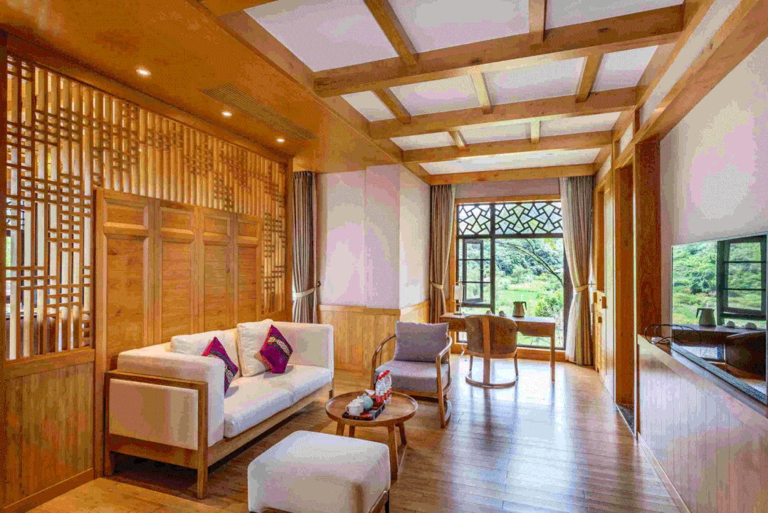 将豪华进行到底,可能这就是野奢豪华房带给你的质感,暖色的灯光照耀下,木质家具散发出古典的韵味,让你在这片宁静中尽情释放自己。