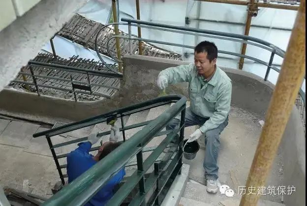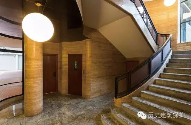 本次保护修缮特色和难点包括对定制电梯等原物的保护修缮,以及对外立面绿色面砖、室内外钢窗、室内黄洞石墙面、地面红缸砖、楼梯大理石与铜制栏杆的扶手、顶面与楼层顶板的隔声保温软木层、水磨石窗台板、长条窄木地板、石材踢脚板、瓷砖踢脚板、马赛克地面、内墙油性涂料、木护壁等特色装饰材料的保护、修复与更新。
