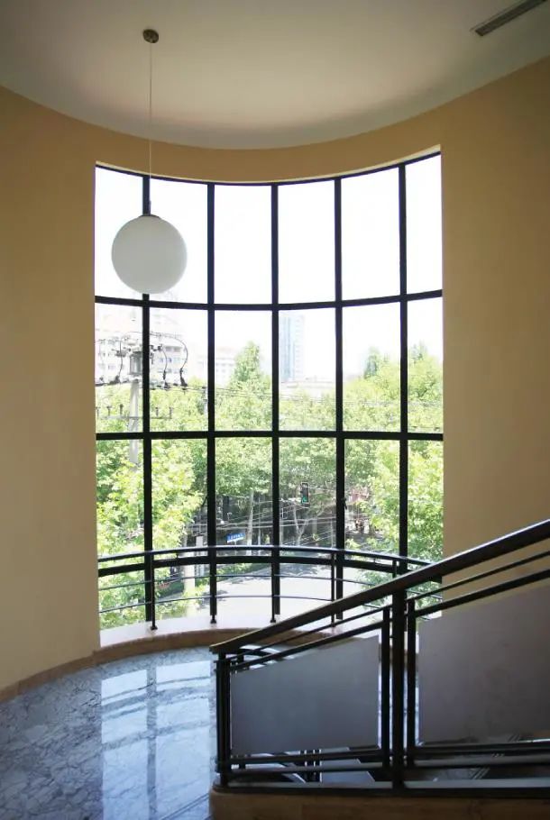 整座建筑室内设施豪华,底层大厅装有跳舞用的弹簧地板、玻璃天棚,楼梯过道走廊采用大理石砌筑,煤卫冷暖装置齐全。流线型的意大利进口大理石铺砌的楼梯,铸铜扶手,玻璃贴面做的楼梯护栏,内墙立面嵌有铜制暖气片,就是在当今时代,其建筑装饰也仍感新颖别致。