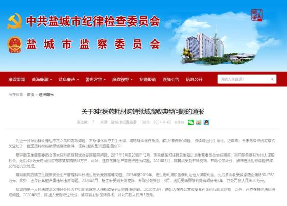 原标题:《吃回扣,盐城医疗系统三人被处理》
