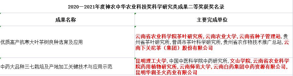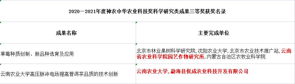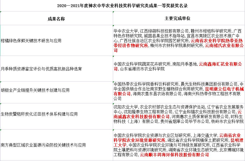 原标题:《神农中华农业科技奖公布!云南这些项目获表彰》