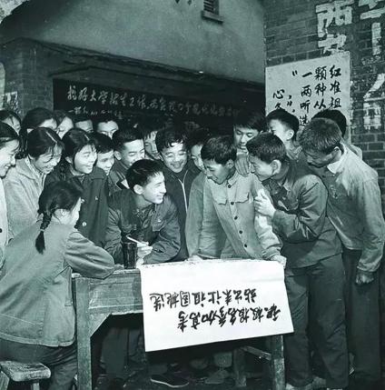 1977年冬天,关闭了11年的高考考场,重新敞开大门,570多万出身不同、年龄悬殊、身份迥异的考生涌进考场。几乎所有考点门口都拉起了这样一条横幅,上面写着:祖国,请您挑选吧!
