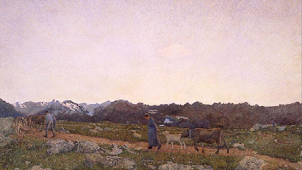 1897年一个秋天的早晨,两位大师级画家乔瓦尼·塞甘蒂尼和乔瓦尼·贾科梅蒂徒步前往魔塔拉。塞甘蒂尼在他史诗般的三联画《生命–自然–死亡》(La Vita–La Natura–La Morte)中呈现了旅途中的美景。