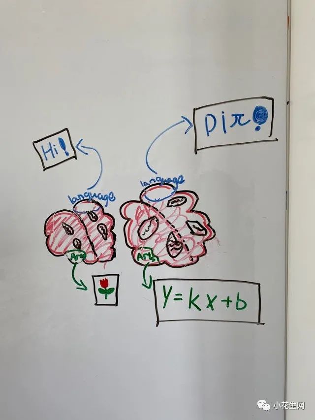 像这样的题,并不需要她给什么答案。我们会继续探讨,为什么用数学的眼光看问题,答案跟凭感觉来的结果不一样,数学为什么有时很讲理,有时很捣蛋。甚至我们会聊从脑成像的结果看,数学家认为公式很美是有道理的。