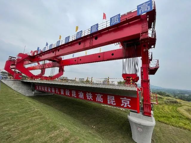 10月9日,渝昆高铁宜宾段,首榀箱梁架设完成,标志着渝昆高铁宜宾段全面进入线上箱梁架设阶段。