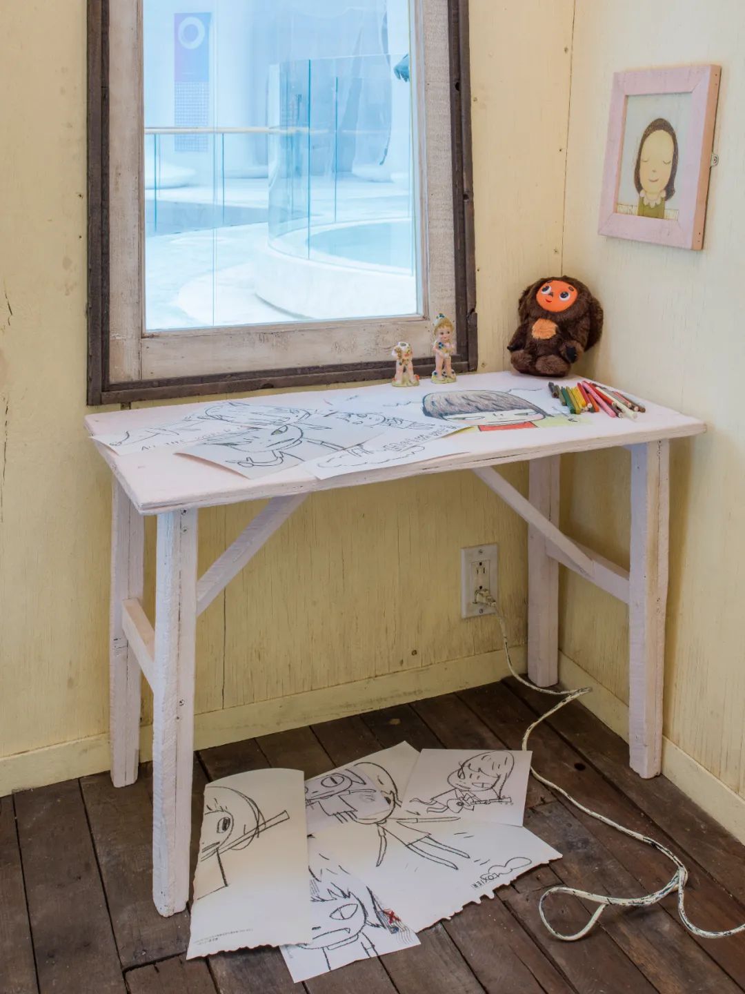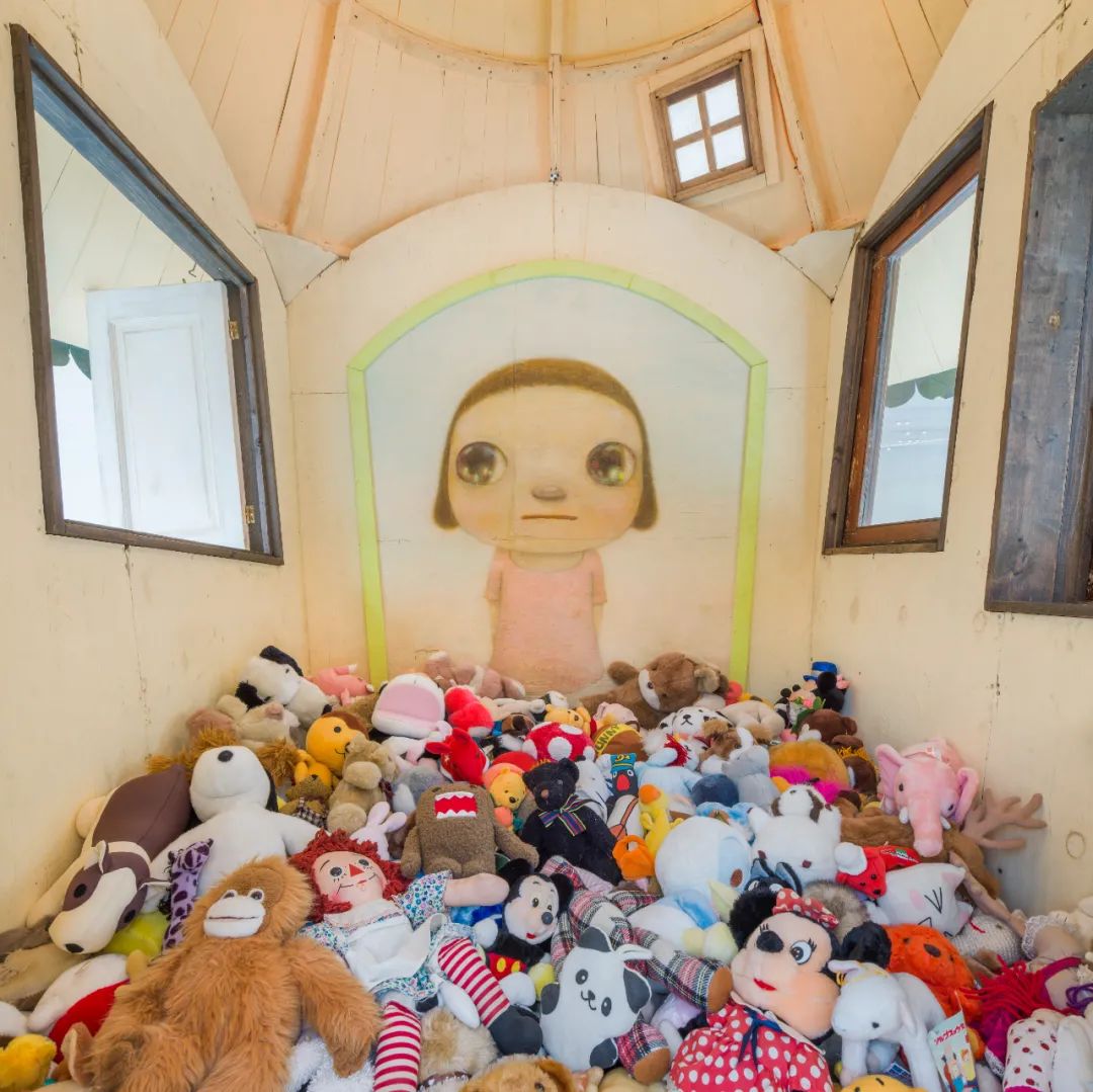 这两座远看极其梦幻的小屋,堪称自成一体的“奈良美智美术馆”。它们融合了绘画、雕塑、装置、行为、观念艺术等多种艺术形式,将之分解,你能看到奈良美智最纯粹的精神世界。