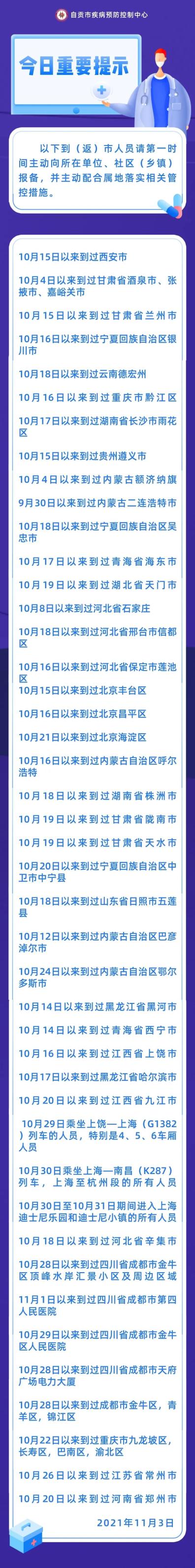 请10月28日以来有成都市金牛区、锦江区和10月22日以来有重庆市九龙坡区、长寿区、巴南区、渝北区旅居史的市民,建议到(返)市前做一次核酸检测,并立即向社区(乡镇)或单位报备,做好自我健康检测,配合社区(乡镇)做好辖区管控措施。