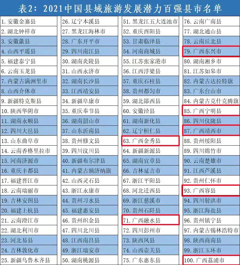 原标题:《给力!2021中国县域旅游发展潜力百强,玉林这个县入围》