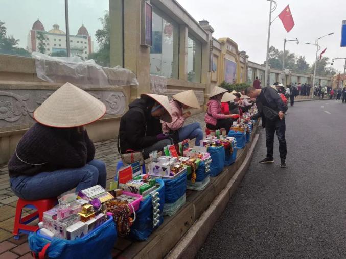 ▲越南边民在中国东兴口岸附近摆摊做生意。图片来源:视觉中国