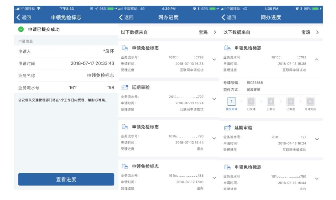 三、网上申请提交成功后,公安交通管理部门网办中心将在一个工作日内办理,期间您可以通过网办进度查询业务办理进度。