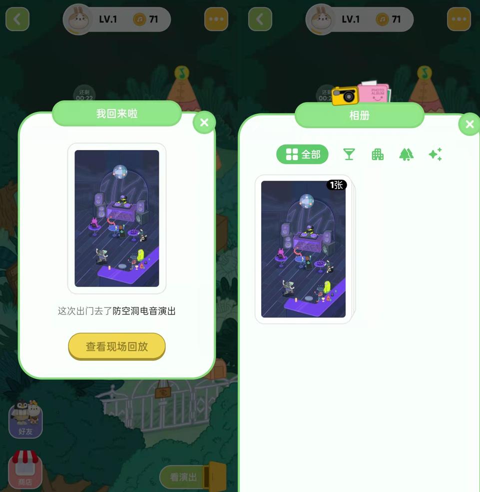 比如我的宠物去了防空洞电音演出,那么我查看现场回放的时候,就可以听到几首电音歌曲。