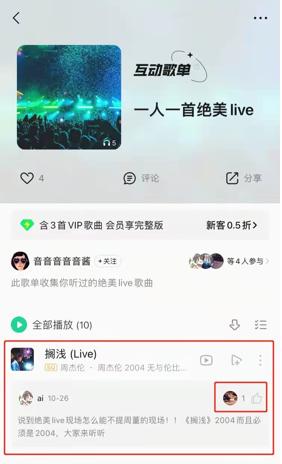 以及支持多人共创的「 互动歌单 」,通过这个功能,大家可以一起建设一张歌单,比如一人一首绝美 live ,所谓众人拾柴火焰高嘛。
