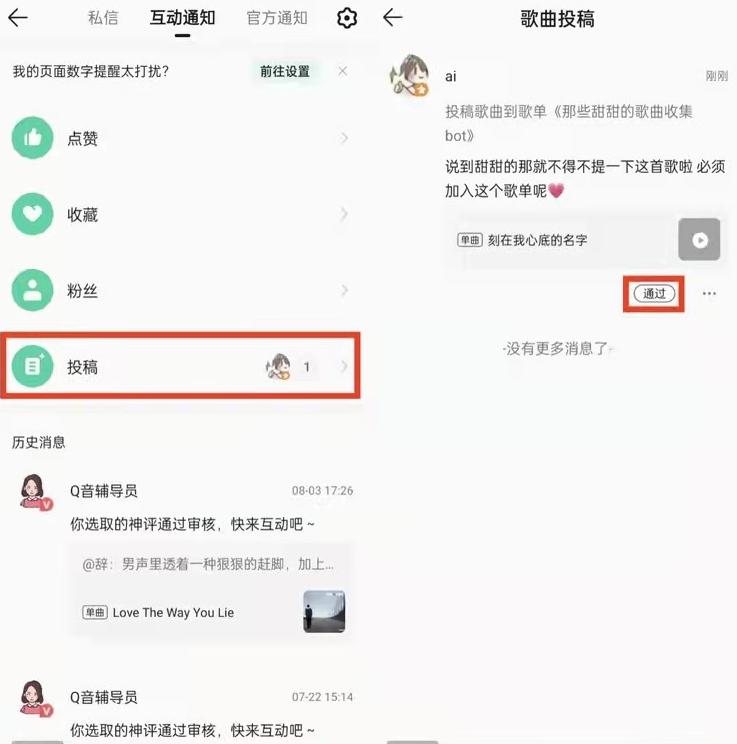 歌单创建人通过投稿以后,你的歌曲就会出现的歌单之中。