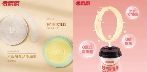 从近期香飘飘的新动向来看,今年9月,香飘飘新品臻乳茶、啵啵牛乳茶面市。臻乳茶以“优选天然牧场进口乳粉和纯味炼乳”为卖点,啵啵牛乳茶以“做到真正的0植脂末、0反式脂肪酸”为卖点。显然,香飘飘在奶茶上又盯上了近年来备受年轻人喜爱与资本追捧的“健康”、“减脂”牌。