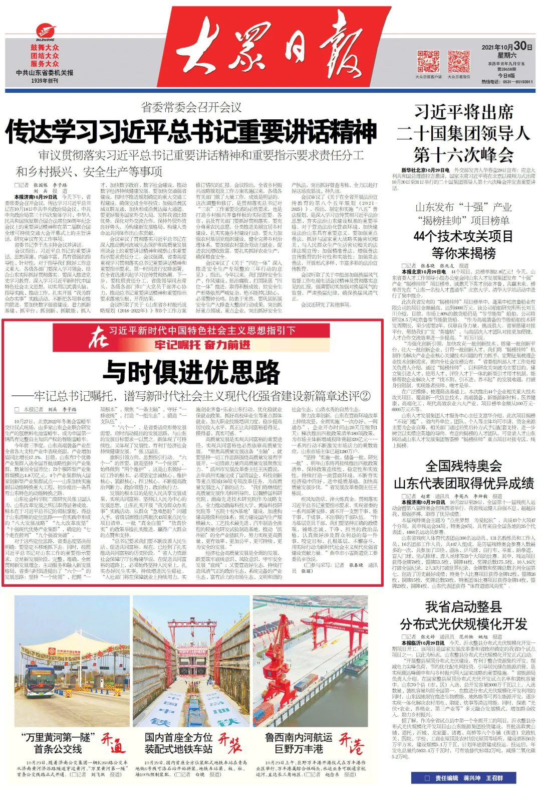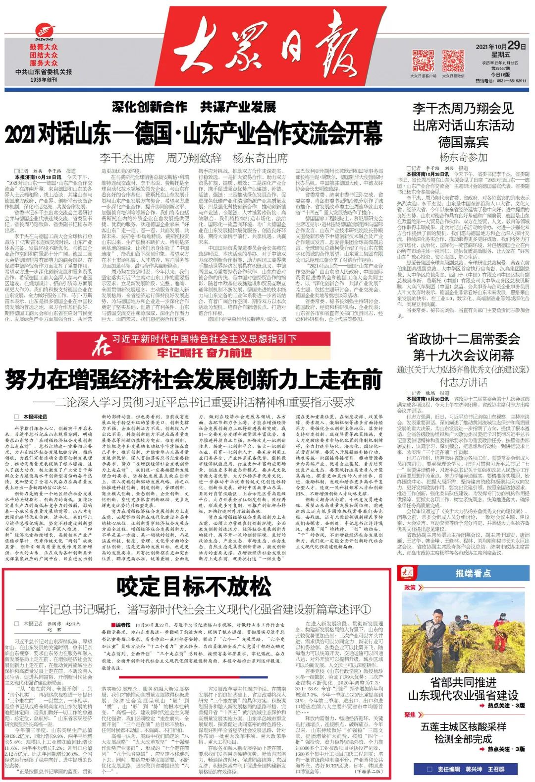 “从‘走在前列、全面开创’,到‘四个扎实’,再到这次视察进一步提出‘三个走在前’,一以贯之、一脉相承,是总书记从战略全局高度对山东发展的精准把脉定向,是我们做好一切工作的总遵循、总定位、总航标。”山东省宏观经济研究院副院长高福一说。