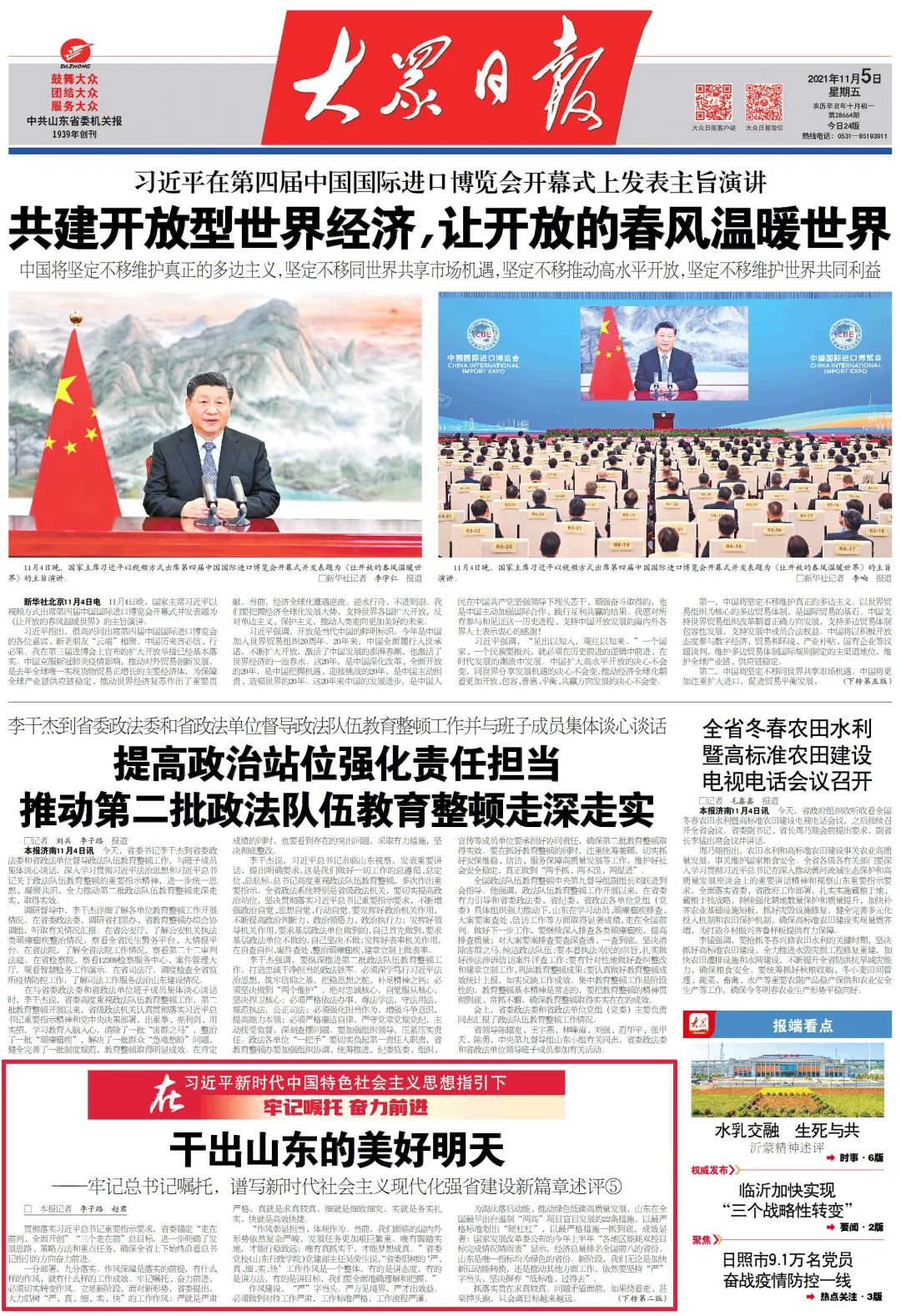 习近平总书记对山东深情似海、厚望如山。在山东发展的关键时期,总书记亲临山东视察,要求山东努力在服务和融入新发展格局上走在前、在增强经济社会发展创新力上走在前、在推动黄河流域生态保护和高质量发展上走在前,不断改善人民生活、促进共同富裕,开创新时代社会主义现代化强省建设新局面。