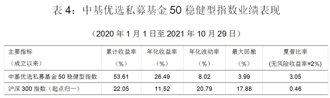 中基50指数的首个二级指数——中基优选私募基金50稳健型指数(以下简称“中基50稳健型指数”)的基准日为2020年1月1日,指数在10月期间表现良好。