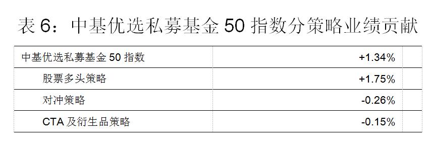 2021年10月,中基50指数上涨1.34%,三类策略中,股票多头策略有较多贡献,达1.75%,对冲策略、CTA及衍生品策略分别亏损0.26%和0.15%。