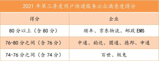 国家邮政局关于2021年第三季度快递服务满意度调查和时限准时率测试结果的通告。