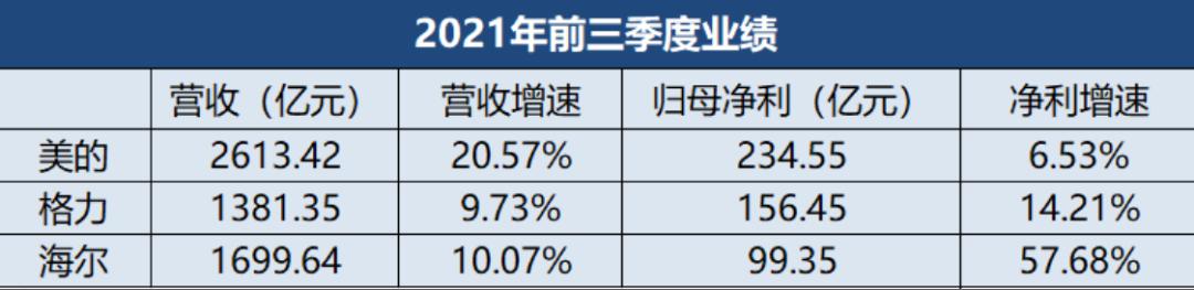 2021年三季报显示,海尔智家营业收入在三巨头中排名居中,增速也较高,但净利润却垫底。
